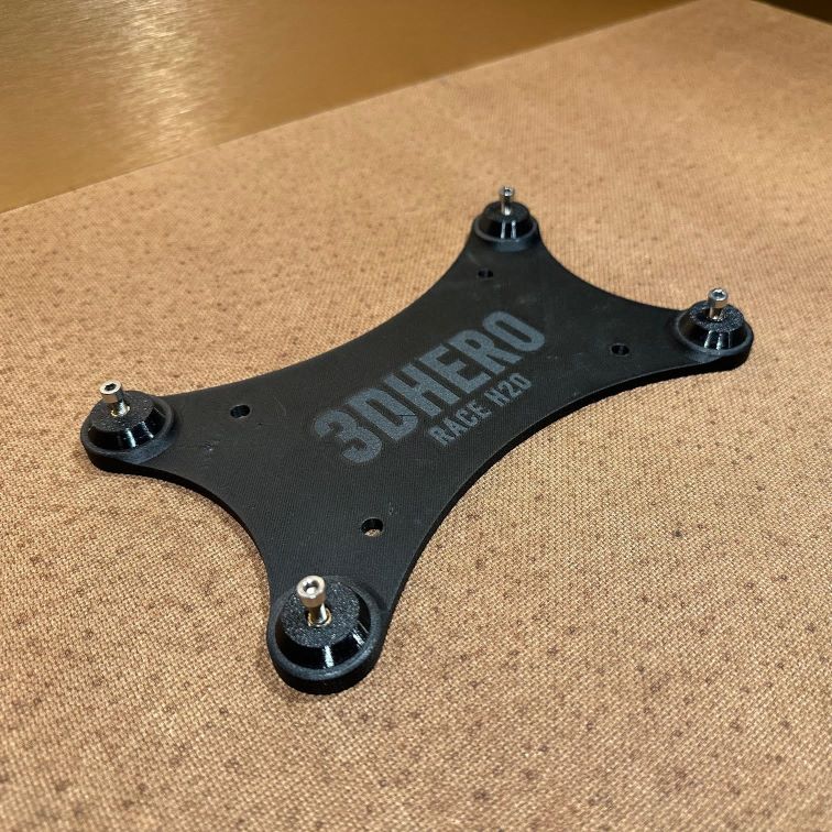 Le support est fabriqué dans une matière rigide et très résistante, et les tampons dans une matière flexible avec des inserts M4.